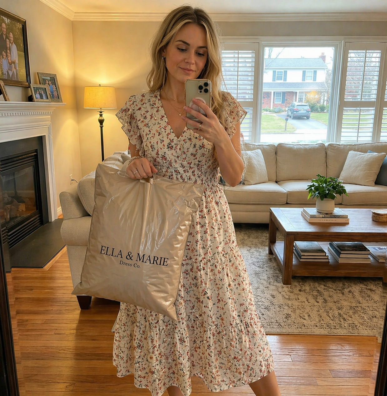 Bei Ella & Marie wird jede Bestellung sorgfältig verfolgt, sobald sie unser Lager verlässt. Sie erhalten stets eine sichere Sendungsverfolgungsnummer – und nur heute profitieren Sie von kostenlosem Versand auf alle Bestellungen.