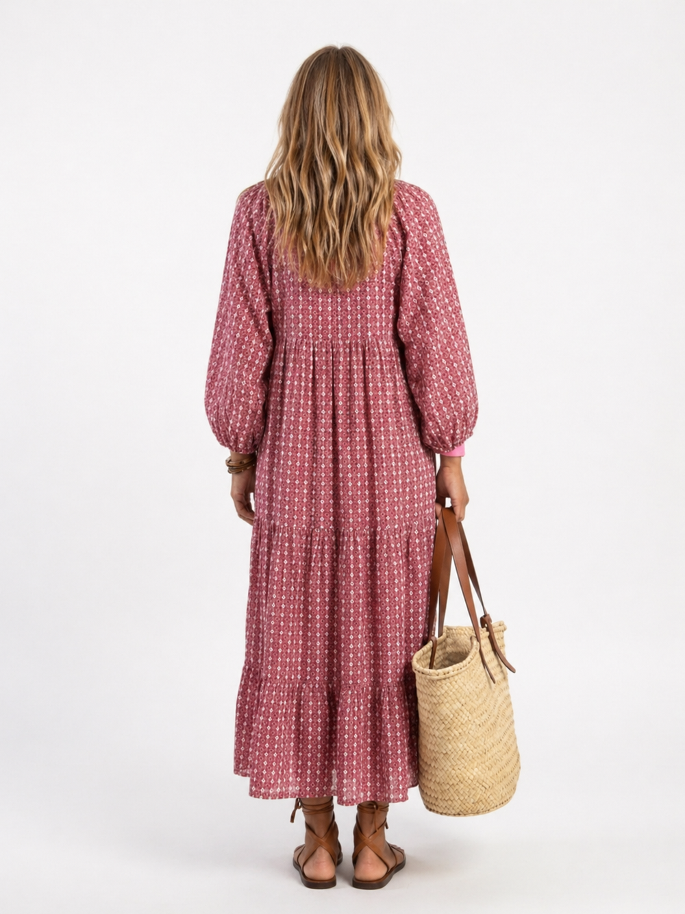 Greta | Midi-Kleid mit langen Ärmeln und geometrischem Muster