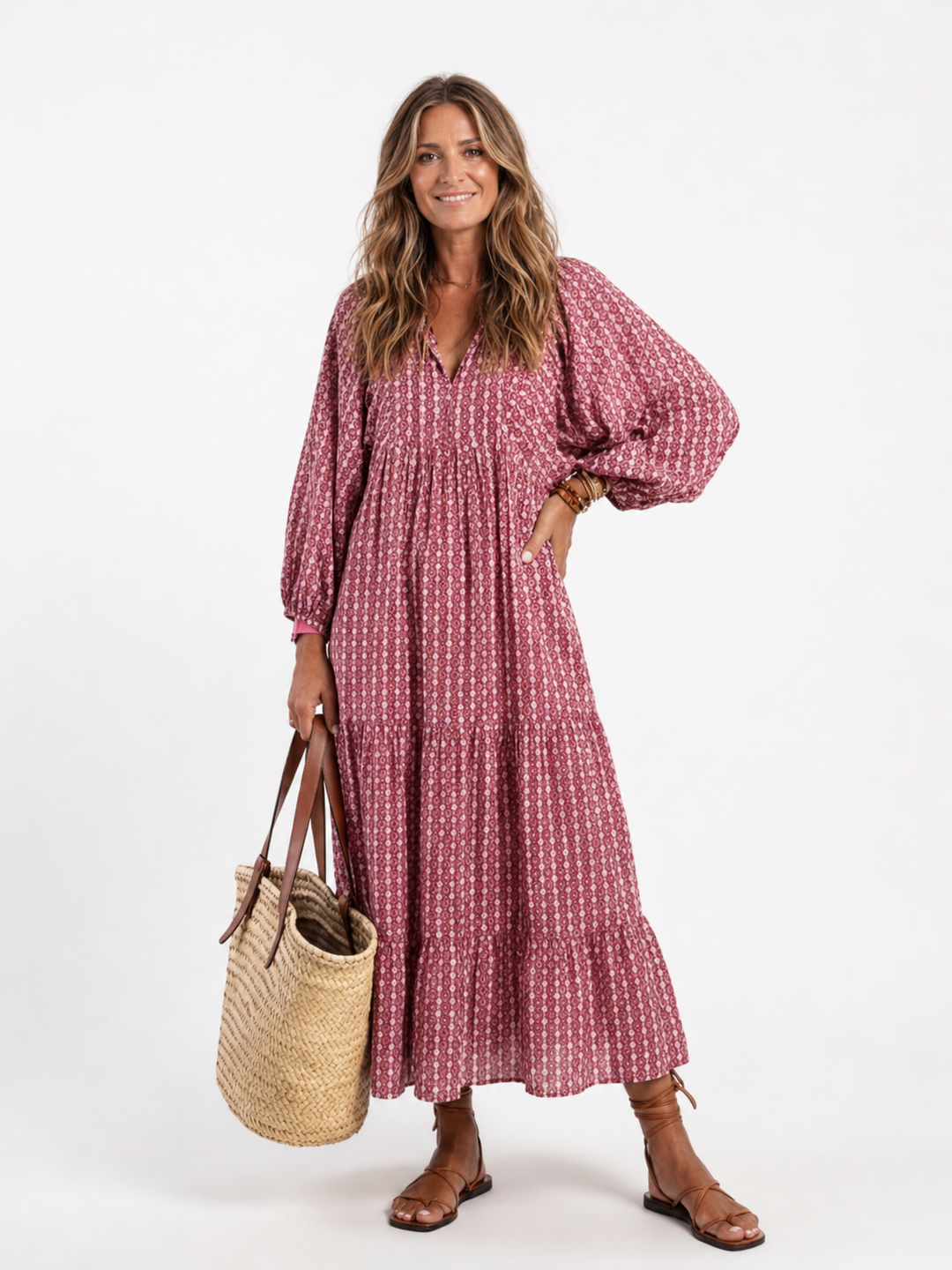 Sophie | Elegantes Midikleid mit V-Ausschnitt und Muster